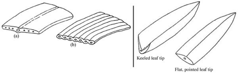 The diagram below shows some possible vein configurations and a keeled or flat and pointed leaf tip.