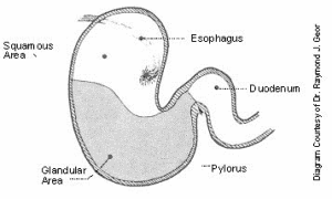 - Exercise – As a horse exercises, the pressure inside the stomach increases, which forces the highly acidic gastric contents from the glandular area up into the unprotected squamous area (Lorenzo-Figueras et al. 2002). Horses in training are known to have a higher incidence and also more severe gastric ulceration than horses not in work. Similarly, the intensity of long-duration exercise also increases the risk and severity of squamous ulcers in both Thoroughbred racehorses (Murray et al., 1996) and endurance horses (Tamzali et al., 2011).