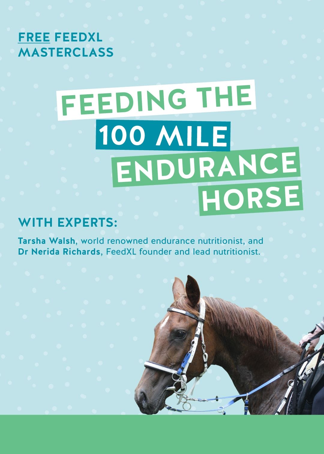 We’re excited for you to watch the replay of our Masterclass to learn more about training and feeding the endurance horse, from one of the best and most experienced endurance nutritionists in the world!