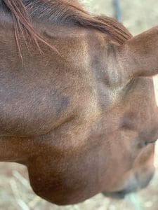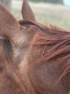 One of our Nutritionist’s horses lives in a region where flies are prevalent, so the horses wear fly masks during the daytime. They also experience extreme heat, reaching temperatures upwards of 40 degrees Celsius (100°F), which has caused significant sweating behind the ears where the mask straps sit.