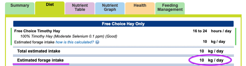 And then you add 0.5 kg/day of oats, free choice forage will go down to 9.5 kg/day…