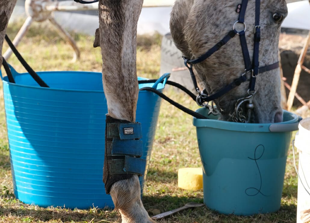 It is REALLY IMPORTANT to get your horses used to drinking the salty water at home during training! Once they get used to it, you should find they will very happily drink it.